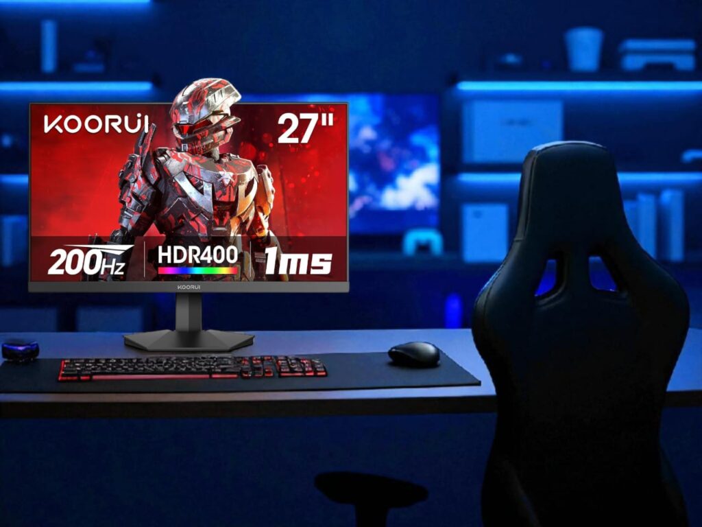 Elevate your gameplay with the KOORUI 27-Inch Ultra-Fast 200Hz Gaming Monitor, designed for precision, speed, and immersive visuals. With a blazing 200Hz refresh rate and ultra-responsive 1ms GTG response time, this monitor is a game-changer for serious gamers looking for elite performance in competitive environments.